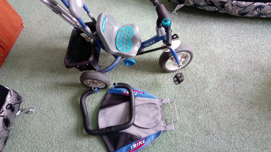 трех колёсный детский велосипед в отличном состоянии, всё в комплекте (козырёк от солнца, удерживающее устройство). Цена 2000 руб.