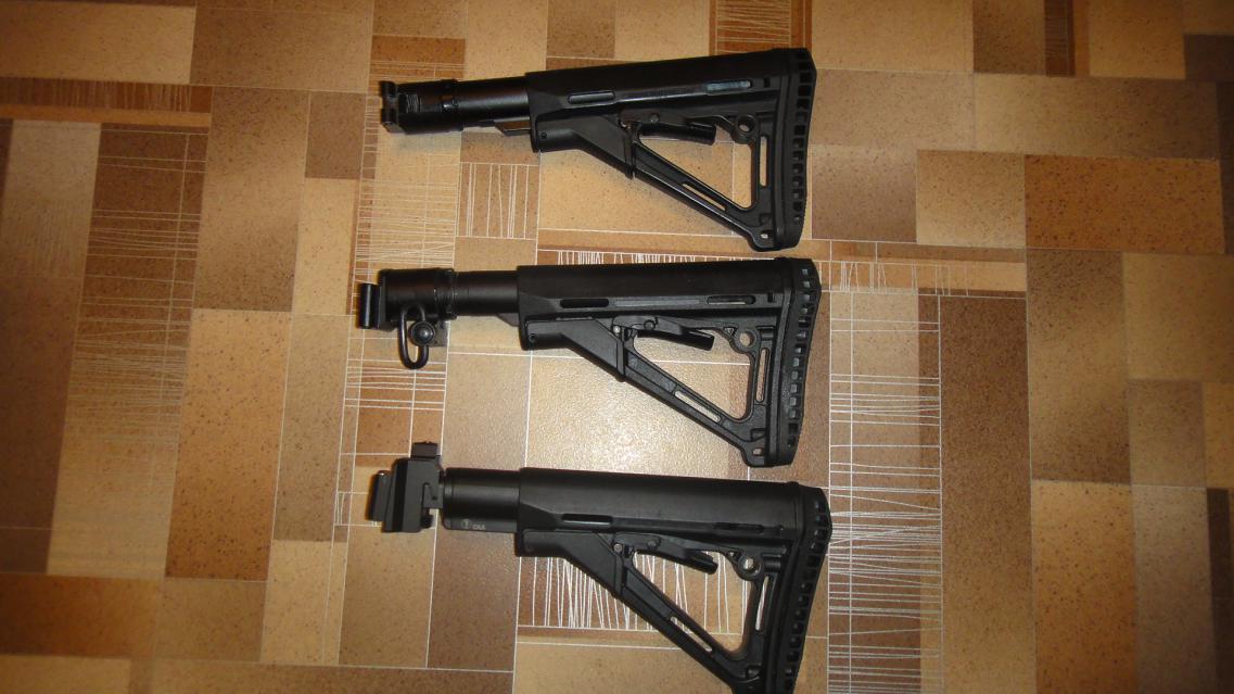 Продам складные телескопические приклады. И так поехали с верху в низ: 1)Телескопический приклад с адаптером (условно складной), брал в этой теме http://forum.guns.ru/forummessage/241/535525.html б/у цена 4000руб. 2)Новый телескопический приклад с адаптером от Фрезера(приклад складывается полностью) труба мил. приклад реплика Magpul CTR c толстым затыльником, установлена QD антабка. Цена 7000 руб. 3)Телескопический приклад-труба с адаптером САА AKFSTR приклад реплика Magpul CTR c толстым затыльником(приклад складывается в право) Цена 10000 руб. Пересыл за счёт покупателя куда угодно.