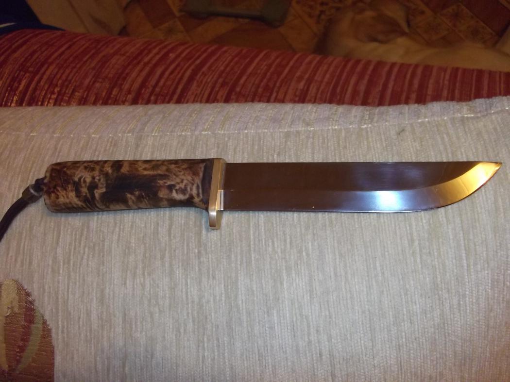 Продается нож ручной работы (из личной коллекции). Нож большой,сталь клинка Х12МФ с термической обработкой,клинок был заказан в г.Ворсма,"зеркало",гарда латунь,рукоять березовый кап,тыльник резной из рога лося, темляк кожа с бусиной из рога косули, ножны-кожа, сшиты специально для этого ножа исключительно вручную (РУКАМИ),на фото выглядит скудновато, в руках-другое дело, отдельное фото пары клинков изготовленных на заказ, концевик пропущен через всю рукоять и стянут,продается не спешно, естественно с незначительным торгом (непосредственно при осмотре), нож своеобразный, на любителя крупных ножей, нож полностью изготовлен и собран Романом Серковым ( с учетом моих пожеланий). Продаю ввиду финансовых проблем....как всегда....ценник усматриваю 15 тыс.рублей (на весенней выставке нож был оценен в 25.....) Не стесняйтесь....приезжайте....смотрите. Подойдет как хороший и оригинальный подарок. НОЖ НОВЫЙ! ЗАТОЧЕН. тел.+7 927 205 6 один 18, Сергей.