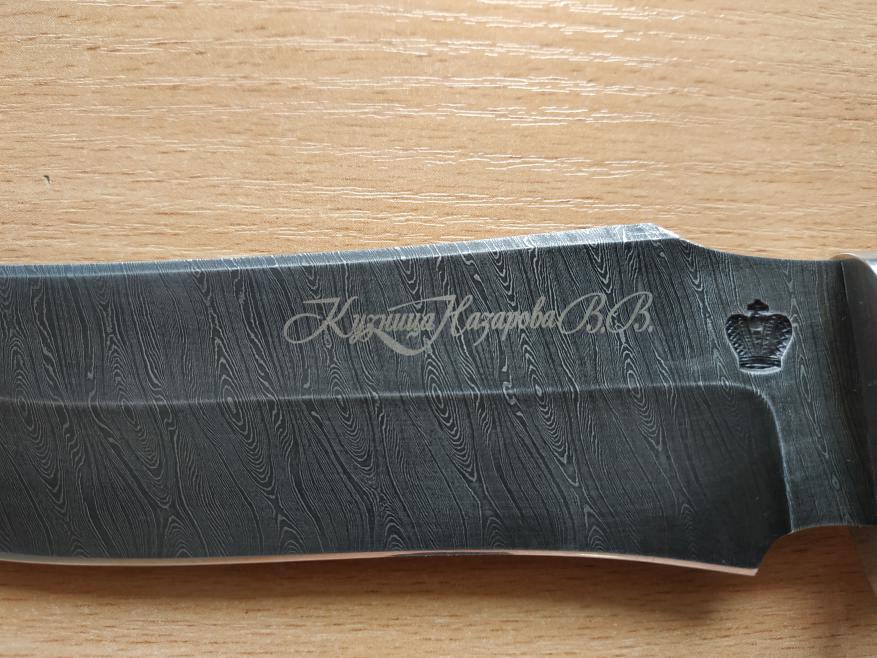Продан.Добавлю еще нож к продаже Нож Мангуст из дамаска кузница Назарова.Дамаск — это высокоуглеродистая сталь, с содержанием углерода до 1,3%, обладающая превосходными характеристиками, нередко приближающимися к свойствам настоящего булата. Процесс изготовления дамасской стали известен и достаточно прост в разговорах и на бумаге, но кузнецов, кто изготавливает дамаск с феноменальными свойствами очень мало. И весь секрет дамаска — именно в кузнице, и не каждый «нож из дамаска» обладает теми качествами, которые присущи этому металлу