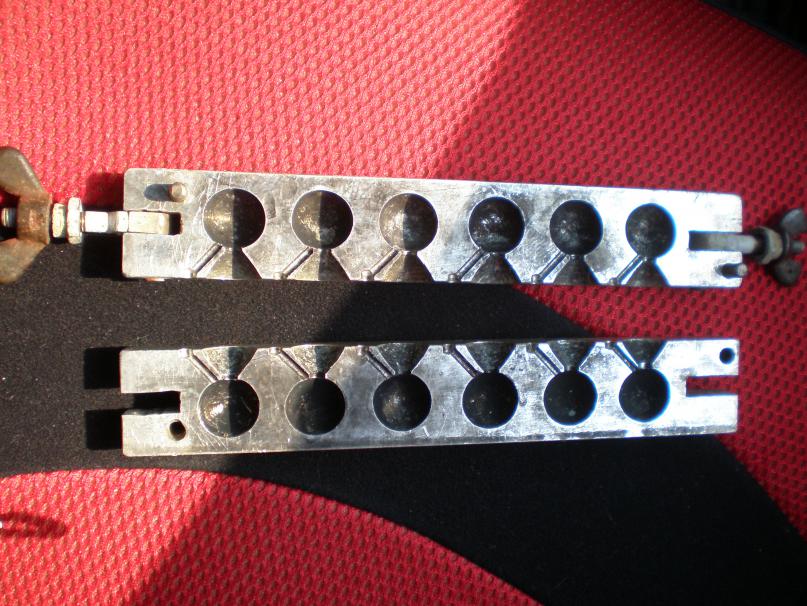 заливные отверстия рассверлены для удобства заливки. Лейка разогревается сначала,а потом уже заливается в нее свинец.Отличная пуля получается главное чтоб руки не тряслись)))