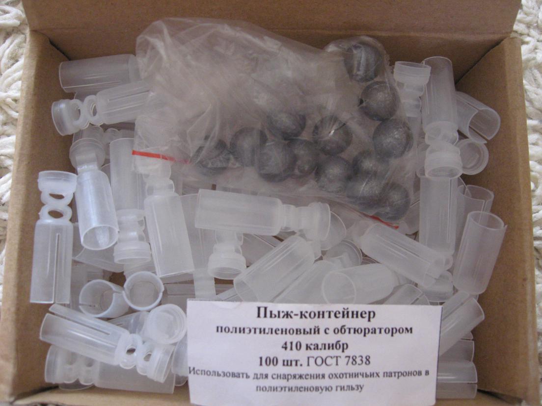 Продам пыж-контейнер п/э-100шт.(для пластиковой гильзы 410кал.)+ бонусом отдам пулю-шар-13шт. ф11мм. 7,8-8гр.