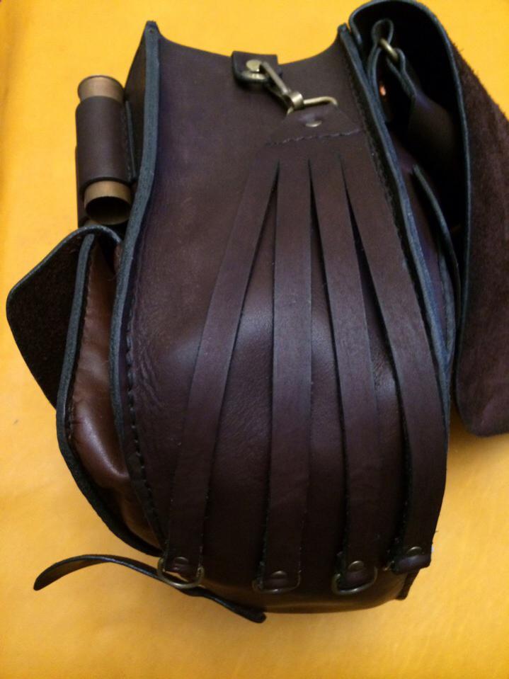 Прошивается все в ручную,седельным швом,вощеной миллиметровой нитью,кожа толщиной 2-2,2 мм,кабурная застежка латунь,остальная фурнитура анодированный метал (коррозийно устойчивый),производство италия,заклепки американские,медь либо латунь. кожа покрывается защитными маслами и восками,это дает ей влаго защиту,и атмосферо стойкость