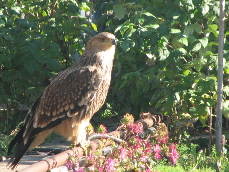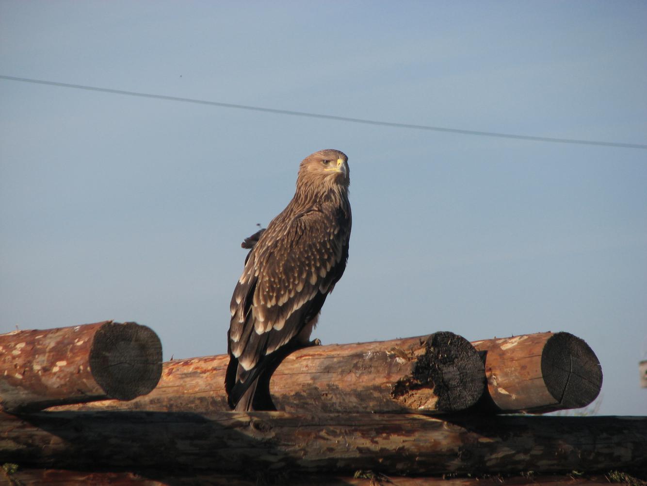 если не ошибаюсь орел могильник. похож на беркута .меньше размерами и светлее головой. занесен в красные книги России Казахстана Азербайджана численность продолжает уменьшаться.высотой 70-80 см размах до 2х метров.