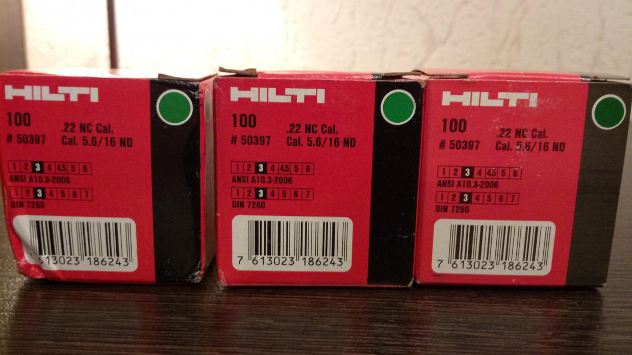 В продаже патроны строительные (шумовые) Hilti, 22 NC CAI. cal. 5.6/16 ЗЕЛЁНЫЕ.