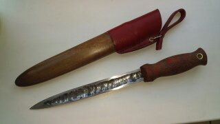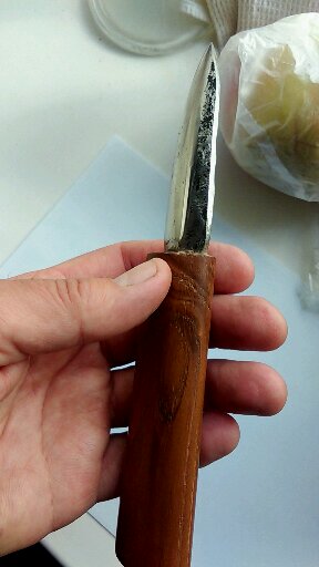 Спасибо за мнение. Я чот тоже не полностью проникся. Собрал его для понимания самого формфактора. Сейчас это тема популярная. Глядишь, кто-то захочет испытать на себе. Вынужден признать, что якут лучше других работает по дереву. Строгает с выбросом стружки, а не уходит по волокнам внутрь древесины. Для розжига костра оч полезно. Хорошо строгает сало и подобное на вылазках на природу. Все это конечно прописано на просторах тырнета, но рассказываю (не только вам) из своего опыта. Разделывать им вполне приемлемо. Рукоять не скользит в руке даже жирная, видимо, из-за материала и пропитки. Хорошо центруется в руке вслепую из-за яйцеобразной формы.Нормально ковырять им "дырки" в дереве. Кому-то это все-таки нужно.)) На севере свой пробный вариант перед этим я сваял из найденной в цехе странной поковки. Думал выбросить. Но сделал нечто якутское. Вышел клинок потоньше, с меньшей линзой. Рукоять дуб. Ребята охотники из соседнего цеха подарили приличный брус. Калил клинок трижды, пока не удовлетворился. Теперь на кухне (в рабочую вахту готовлю сам) это чуть не первый нож. Углеродка все-таки обладает интересным резом. С шипением что-ли...