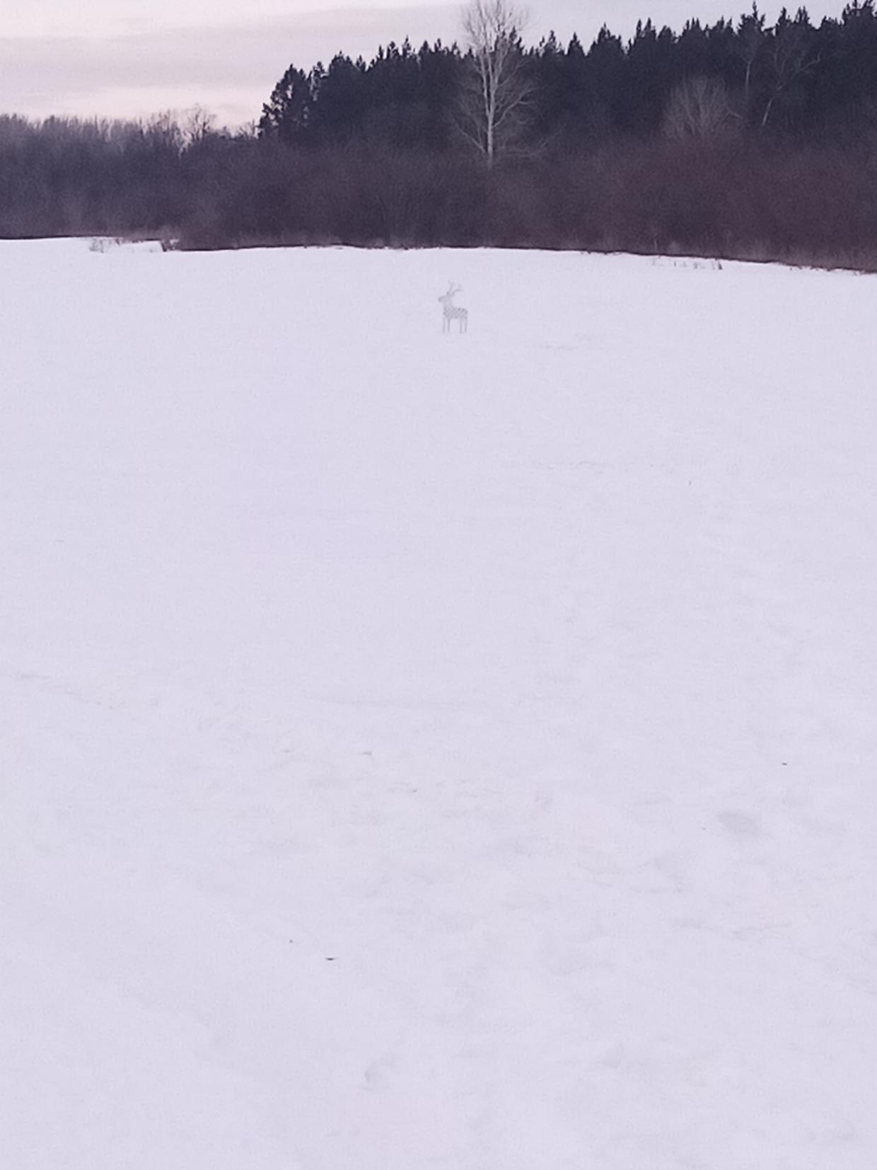 В итоге оказался белый олень с рогами-фанерный. Видимо кто-то хотел произвести пристрелку оружия или просто подшутил.Вчера на том месте были охотники на ниве шниве. Если это были форумчане, так знайте ваша шутка УДАЛАСЬ!
