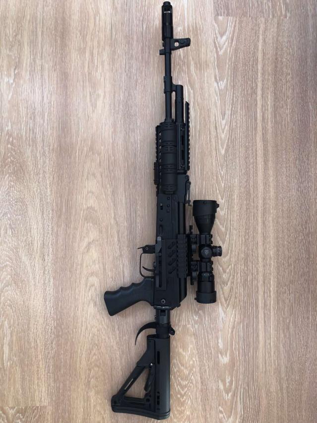 Карабин Сайга 5,45х39, куплен в 2015 году, настрел 900, вместе с карабином идет: боковой кронштейн, ДТК Ночь 2, рукоятка-сошки, тактический приклад, кронштейн для крепления фонаря, два магазина + стоковый, родное цевье и приклад, два коллиматора (Китай), патрон для холодной пристрелки, ЛЦУ. Прицел Leapers UTG BugBuster 3-9x32 AO с красно-зеленой подсветкой сетки. 70 000 р. Без оптики цена 60 000. тел 89276570100