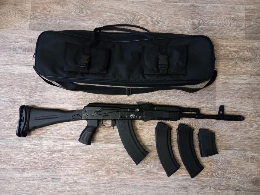 Продам карабин Сайга TG 2 калибр .366 TKM, 2020 год выпуска, в г. Самаре. Карабин куплен в мае 2020 года, хорошее состояние, рама карабина ровная, мушка и газблок стоят ровно (не завалены), хром внутри канала ствола равномерный, нарезы чёткие, дульный срез правильной формы, настрел около 400 выстрелов, грамотная чистка и уход. С карабином отдам 4 магазина – 2 стандартных от КК на 30 патронов, 1 от С.К.О.С. на 30 патронов и короткий от той же фирмы на 5/10 патронов. Все магазины обкатаны, работают штатно. Так же отдам чехол и стандартный набор по уходу, который идёт в комплекте с завода (шомпол, маслёнка и пенал с принадлежностями).
