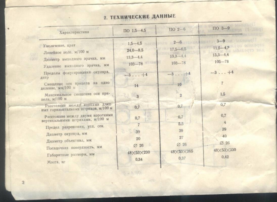 Кратность переменная от 2 до 6 крат; Диаметр окуляра 39 мм; Посадочная поверхность 26 мм; Сетка Т-образная, с острым пеньком и тонкими вертикальными штрихами для поправок на ветер и определения расстояний. В комплекте: Прицел, светофильтр, две шкалы дистанций для 7,62х54R и 7,62х39, копия инструкции. Могу укомплектовать стальными кольцами на ласточкин хвост +1000 руб. Прицел позволяет вносить поправки на дистанцию вращением верхнего барабанчика, размеченного до 500-та метров (разметка соответствует баллистике потрона 7,62х54R (Мосина, Тигр, Вепрь и пр.), так-же в комплекте шкала дистанций для 7,62х39 (СКС, Сайга и пр.) ; посредством вертикальных тонких штрихов вносить поправки на ветер а также измерять расстояние до цели (порядок описан в инструкции). Состояние хорошее. Минусы- есть потёртости краски от колец и соринки на стекле. Тяжелых калибров не видел, использовался на мелкашке ТОЗ-78, зарекомендовал себя отлично. Цена: 4500 рублей.