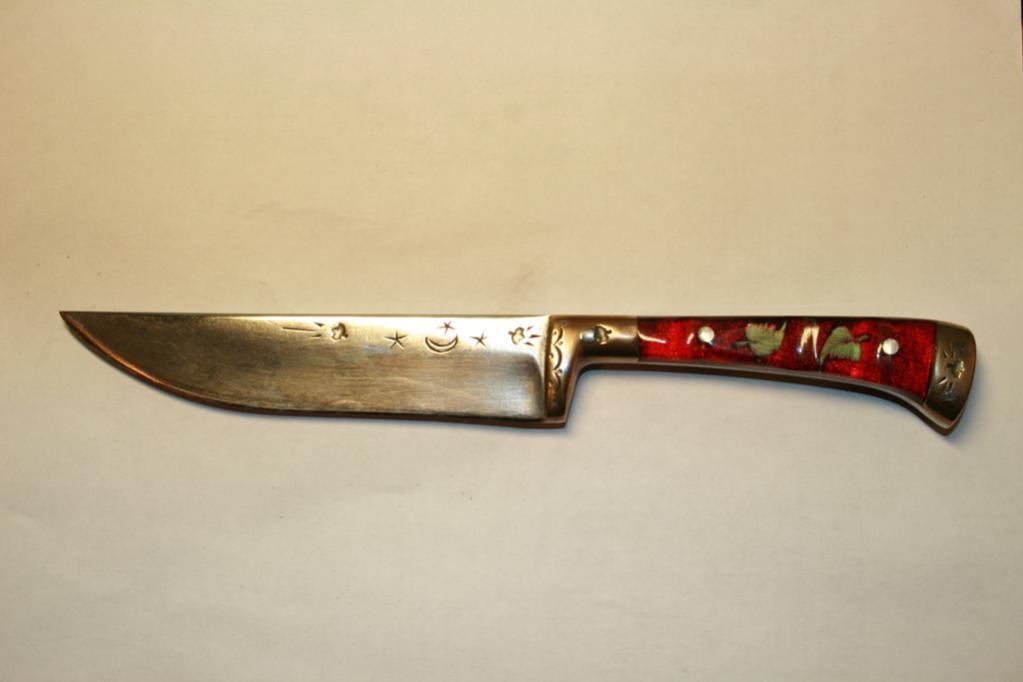 Предлагаю на продажу пчак.Может быть кому-нибудь пригодиться у меня он не прижился. За 7-8 лет владения этим ножом пользовался им пару раз всего.Я считаю, что любая вещь должна использоваться в хозяйстве. ТТХ Полная длина 200 мм Длина клинка 110 мм Толщина клинка 3 мм Ширина клинка 23 мм Материал клинка: хз углеродка какая-то Ножны: колхозно самодельные, замша Рукоятка: оргстекло,латунь,художественная фольга Общее состояние видно на фото.Нож б/у и слегка погнут, таким он мне и достался. За 1000 руб с удовольствием бы с ним расстался. Последний раз редактировалось A.Shok; 13.09.2012 в 01:16. |