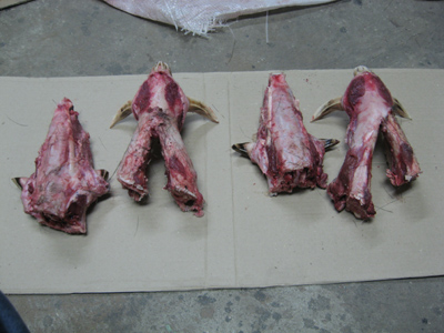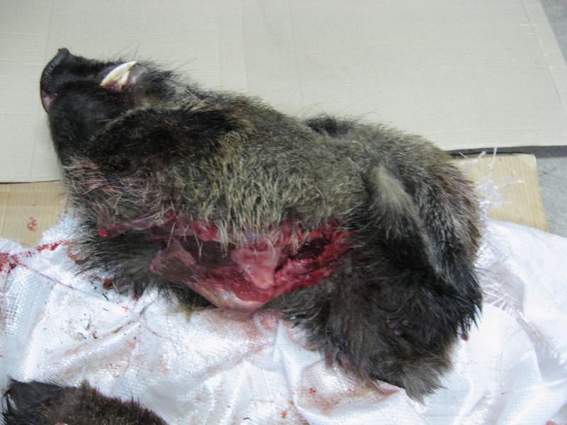 - Хочу порекомендовать начинающим охотникам "трофейщикам", как лучше !! Не буду говорить ((правильнее)) правильно у всех по разному, срубать клыки... -голову переворачиваем, извлекаем язык -вставляем палку между нижней и верхней челюстью, чтобы при рубке зубы не сломались друг о друга. -начинаем с нижних клыков, срубаем нижнюю челюсть, отделяем -подставляем что то, под верхнюю челюсть и рубим краем топора (верхняя часть - хрящ) -срезаем лишнюю мякоть. |