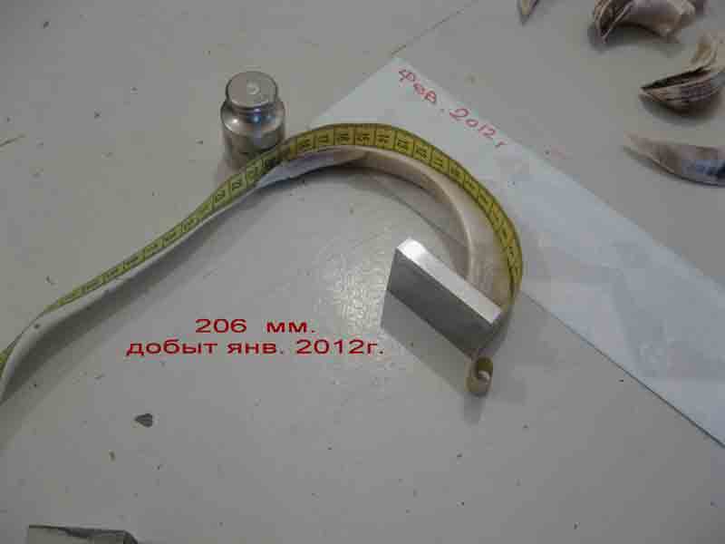 ____ ЗАМЕРЯЕМ______ . На кончик рулетки крепим скотч чтобы она не двигалась. Выставляем _0_. Баллы высчитывать я не хочу, единой шкалы нет, остальное напрягает. Поэтому решил по самому большому, наружному, размеру ((для всех более доступно))... Наши комплекты нижних клыков получились ; (( 193 и 184 мм. )) (( 206 и 203 мм. )) , Вы можете сравнить, сколько они торчали из челюсти и какой полный размер, теперь клыки нужно залить...