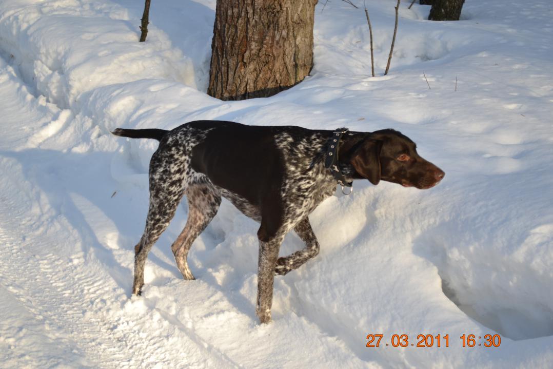 Про кобеля - с полугода, до полутора лет занимались по "полевой" у Гуриненко А. (извиняюсь если фамилию некорректно написал). Полевых дипломов нет(это для меня не важно), но кабель постоянно на охоте особенно осенью и начало зимы.