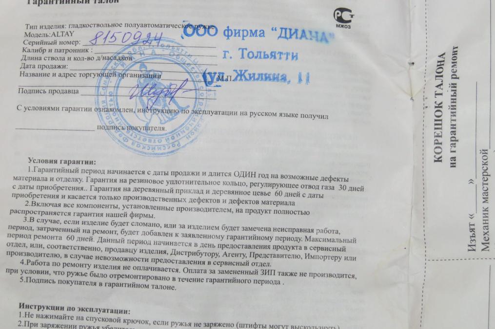 Возможно отстрелять и повертеть в руках. А у какого ружья в данном ценовом сегменте все положительные отзывы? Главное работает как часы, что самокрут, что покупные, все переваривает... Хозяин купил себе новый п/а, а этот стоит пылится...