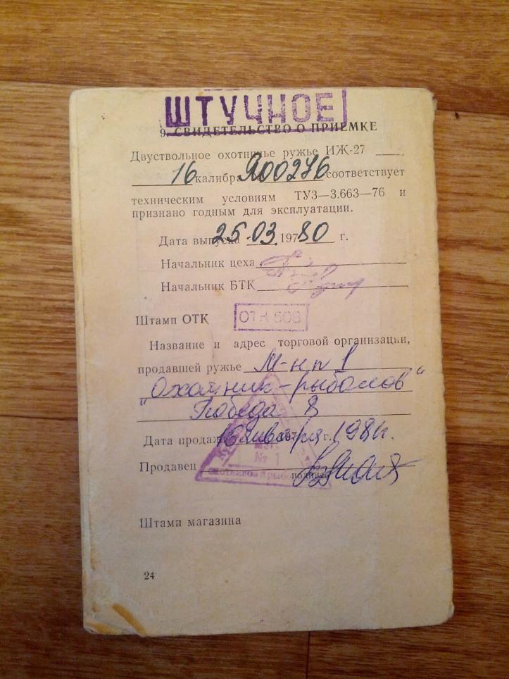 Здравствуйте, есть отличное ружье Иж-27, 16 калибра, в идеальном состоянии, 1980 года, штучное, по всем вопросам можете звонить по телефону 89372053525 Александр.