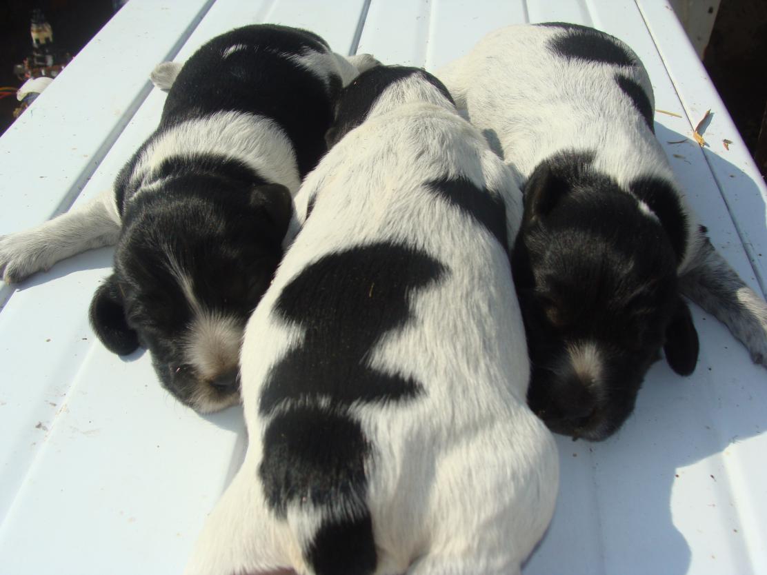 Щенки появились 12.07.2016 года. Два кобелька, одна сучка. Окрас у всех черно - пегий в крапе. В продаже к 12.08.2016 г., один кобель и одна сука.