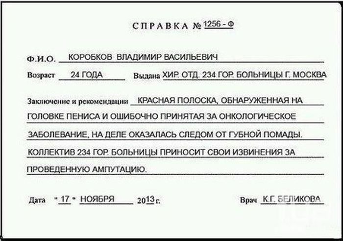 - Огромная просьба! Отключите пожалуйста бегущую строку. - А что такое? - Жена с корпоратива вернулась, думает, что это караоке ================================================== ================================================== = Бывает,лежишь на диване,пьешь пиво,смотришь телевизор!А тут звонок:-"Ты сына забрал?Продукты купил?Завтра мама приезжает,не забыл?Что ты молчишь,Сережа?"А ты не Сережа,ты Андрей!!!И на душе легче) ================================================== ================================================== = Решил царь женить своих сыновей - дал им лук и стрелы: - Стреляйте, сынки! Куда стрела попадет - там и невеста ваша будет! Старший попал среднему в ж*пу, а младший себе в руку! ================================================== ================================================= Работник ГИБДД застал жену с любовником, но за 500 рублей закрыл глаза на инцидент. ================================================== ================================================= Cижу вот, работаю. Странно - вот почему 5-ти копеечная монета в правую ноздрю влезает, а в левую нет? ================================================== ================================================= Жена, сексуально одетая, протягивает мужу две веревки, эротичным голосом: - Свяжи меня и делай все, что хочешь! Связал ее и пошел на охоту