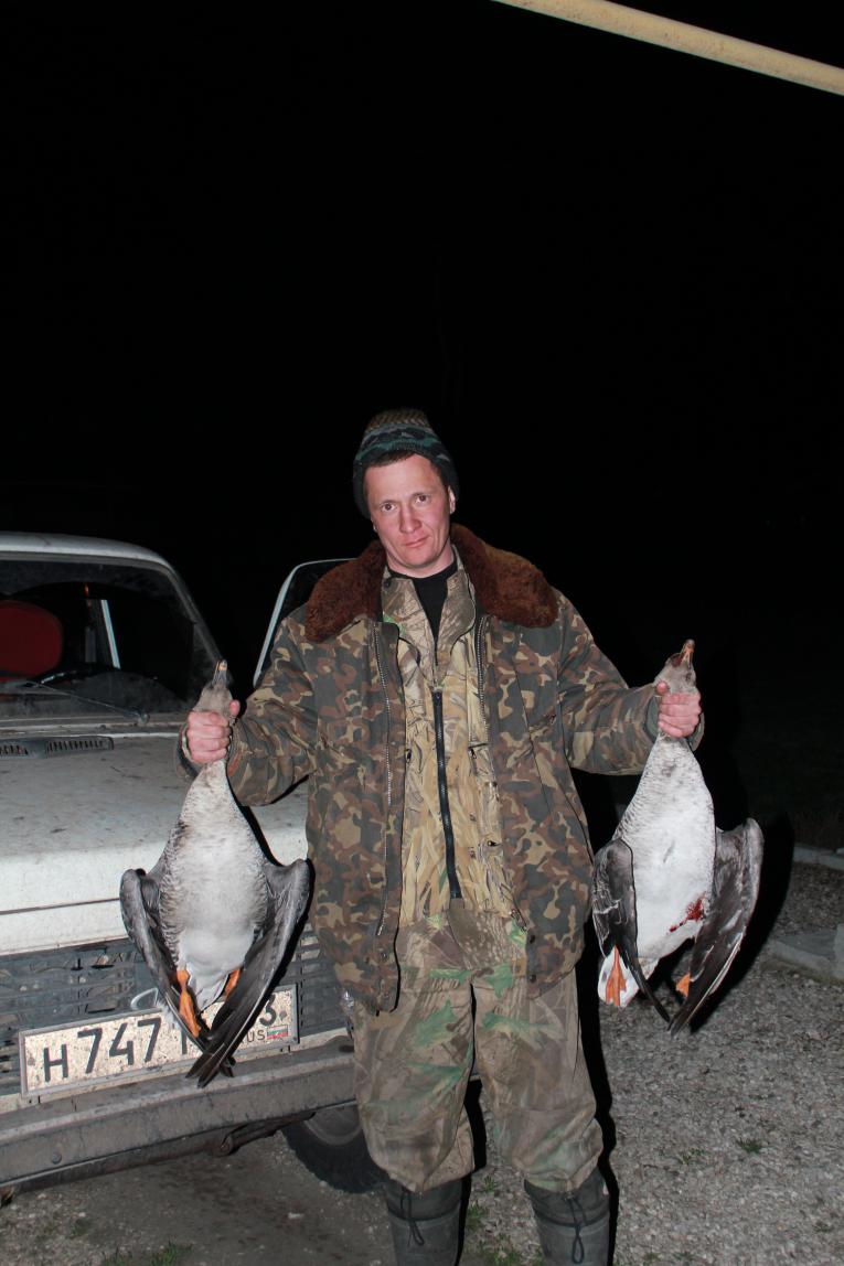Приехали, нашли, много мазали, но маленько взяли. Попробовали охоту на перелетах, на вечерке на выходе с поля, немного с местом не угадывали (мало стрелков). С кормежки гусь уходил одним коридором, как первая стая уходит, так и остальные за ней +/- 20-30 метров. |