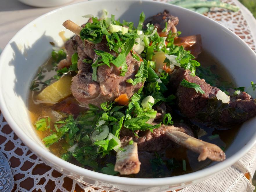 У меня друг приезжал, поэтому мы постарались изобразить рецепт во всех красках… Мясо отстает от кости, очень мягкое и сочное…