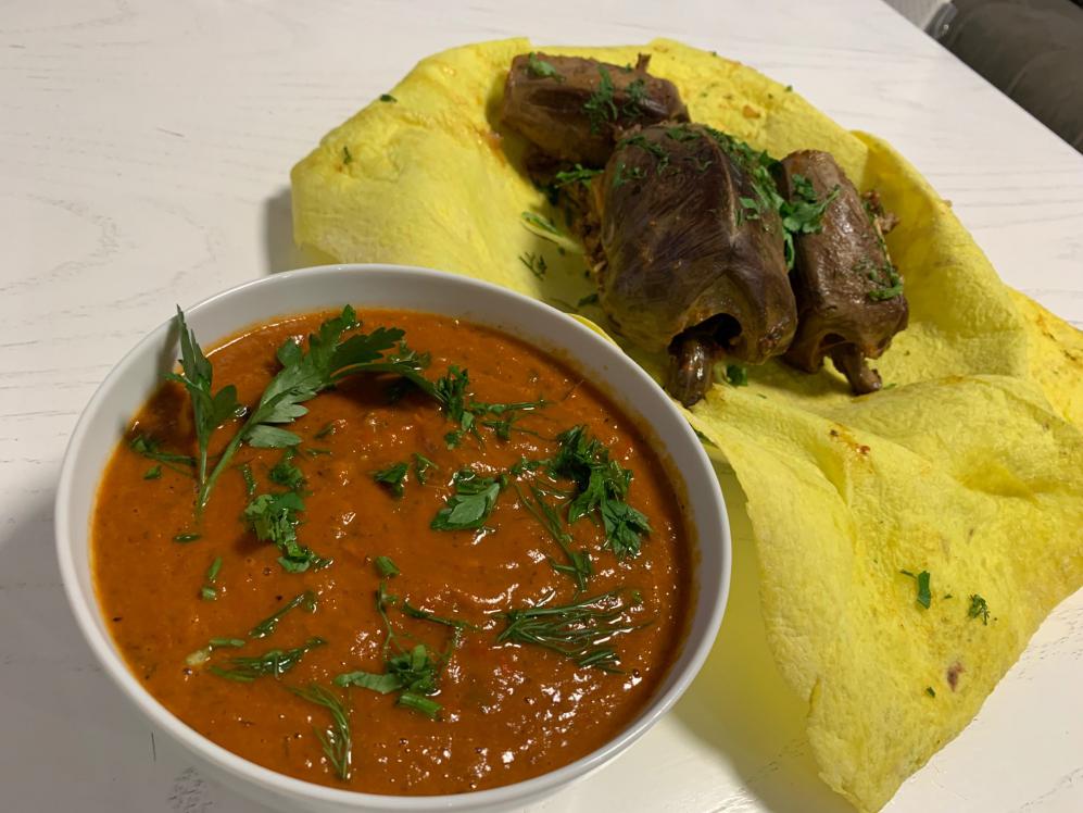 Кушать соус или суп пюре можно отдельно, можно покрошить мясо утки, можно просто макать лаваш и мясо в него – вкус не передать словами. У меня утки кончились через 7 минут – дети уплетали за обе щеки…