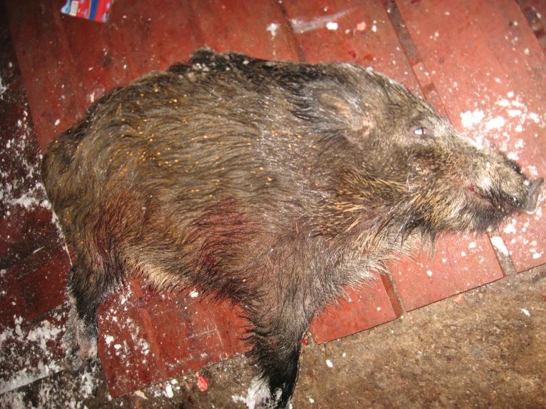 Второй день охоты, Секачок был взят из калибра 30-06