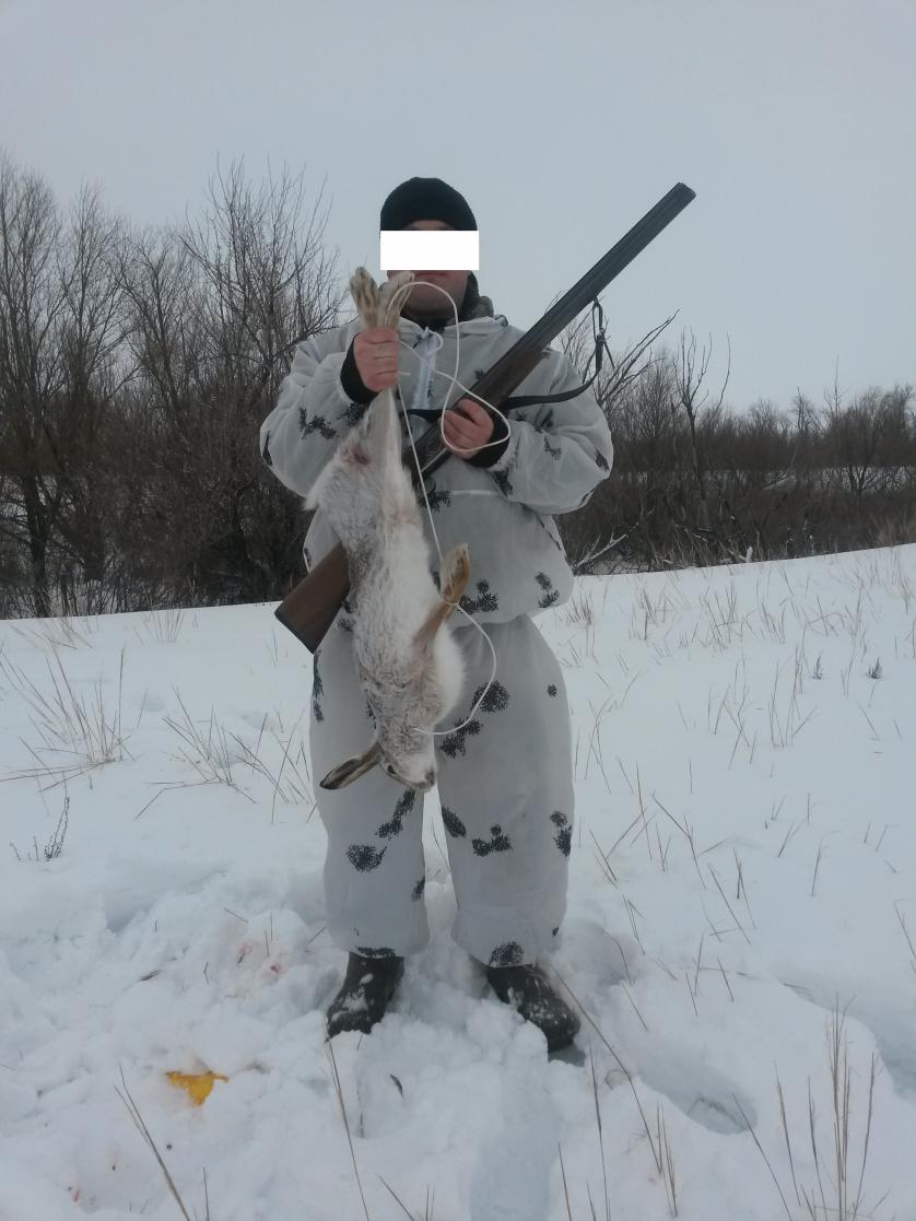 ...всем доброго вечера...ну и погодка нам досталась сегодня для охоты на зайцев), ветерок в степи за 20 м/с , да с дождем, да с крупой и под конец с метелью))...НО)), зайцев нагляделись, следов море, удивился немного, почти полным отсутствием "рыжих-красно-пегих"))- причина проста- за день на встречу промчались четыре снегохода ( и каких- последние модели 2013г)), думаю ребята не просто там бензин катают, видимо переусердствовали)))....и так по охоте, приехали, а ездили на седане, так что машину бросили у знакомого фермера, надели лыжи( очень хорошо сегодня показали себя полу-пластиковые лыжи с насечкой- снег не прилипал )... сразу за фермой начались следы...прогнали овражек- выгнали сразу пару, но этим повезло- были вне выстрела, потом еще из посадки, но косые никак не хотели идти вдоль-разбегались в стороны)))...потом все-таки мне повезло, нашел на хитросплетение)), но на то мы и охотники, чтобы распутывать, подъем!!- выстрел единицей...финал))) и потом 5 км против метели)))до машины)...