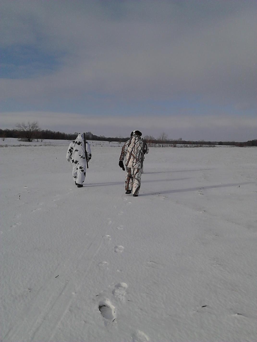 Решение перейти через а\д и прочесать другую сторону угодий. после похода в 1,5-2 км по овражкам, на поле были засечены 2 лисы, оставляю стрелков с мыслями что лиса пройти должна именно тут, так как двигалась в нашем направлении... сам бегом делаю крюк в км 2 обхожу стороной... чтоб подогнать на стрелком, и не успеваю вижу что лисы идут уже в др. направлении в мою сторону...ложусь на поле, метров на 80 подходят и видимо начали чуить, сели и сидят меня не видя но что то подозревая не ладное) вообщем смотрю разворачиваются, я встаю и заряжаю дуплетом в них, не в надежде попасть расстояние все таки... а в надежде что пойдут на стрелков, но после побега в метров 10 резко поворачивают в сторону... короче ушли рыжие... Идем дальше... смотрим летит родимый... голубенький. хотели уж доки доставать, но нет. пролетел мимо, видимо куда то в др. место.... идем далее минут через 25 видим снежик окурат в нашу сторону, егерь. проверил доки записал уехал...