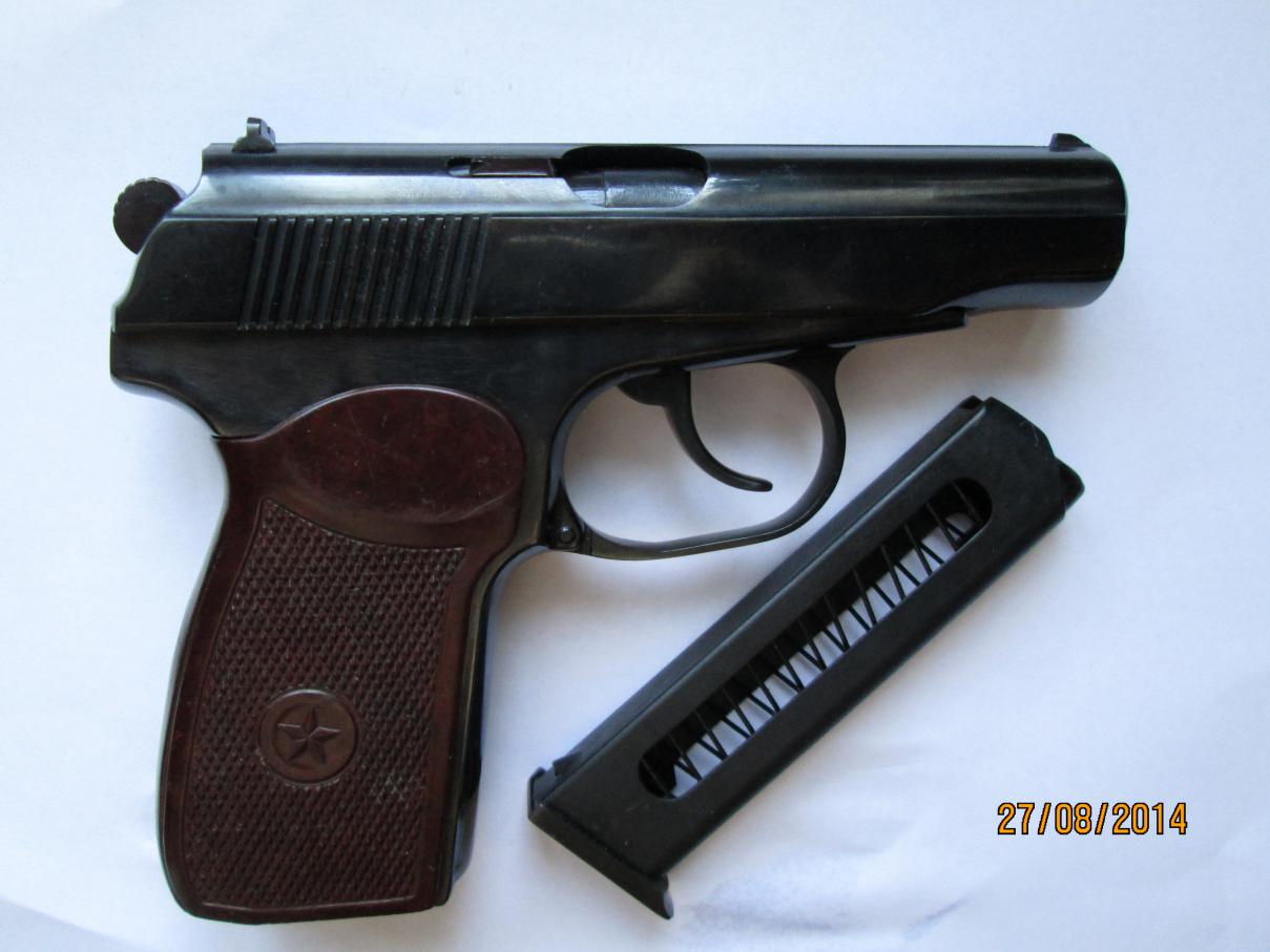 Произведена шлифовка, заводской шершавой поверхности больше нет. Заново оксидирован, вклеен имитатор выбрасывателя, установлен штифт под стволом. Расточен клапан и обтюратор, установлен длинный боёк, установлена гнутая скоба боевой пружины ПМ, магазин под скобу переделан. Спусковой крючок переточен, гайка ствола круглая. В комплекте паспорт с отвёрткой, стандартный ново дельный винт боевой пружины, стандартный короткий боёк. Дополнительно отдам гладкий ствол, замена производится проще чем в стандартном варианте, так как пружину спусковой скобы держит штифт что установлен под стволом. ППШ-М цена 13.000 С аппаратом ни чего ни делал, ни разу ни стрелял. Брал в качестве стреляющего макета. В комплекте паспорт, маслёнка, второй приклад. 6П42-7,62 газовый цена 4.500 есть шум и газ пат, по договорённости. Оформляется на лицензию. Тел. 892789900 семь шесть |