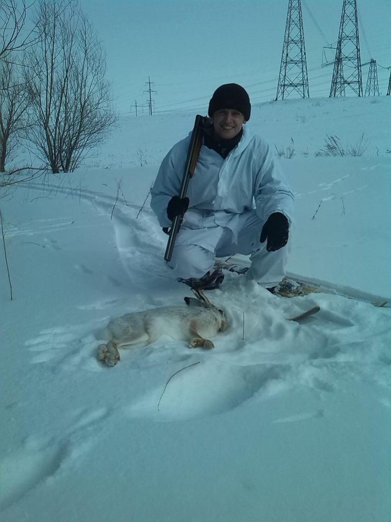 Сегодня почти удалось закрыться) Собачка подняла косого, товарищу по рации говорю держи на тебя выйдет, вообщем косой вышел как и предполагалось, с 15-20м были произведены 4выстрела. Но зая ушел) Другу говорю беги не оглядывайся, будешь вместо косого!