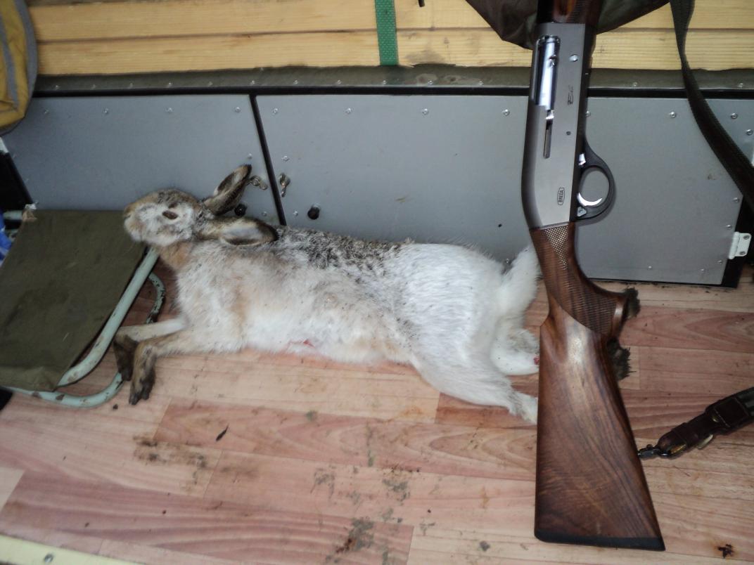Были вдвоем товарищ ушел с собакой на другое поле так-что был один засек его на лежке подпустил метров на 15 потом поднялся вторым выстрелом зацепил а потом мало мало побегали но добрал.Если честно вначале не рассмотрел что это заяц.