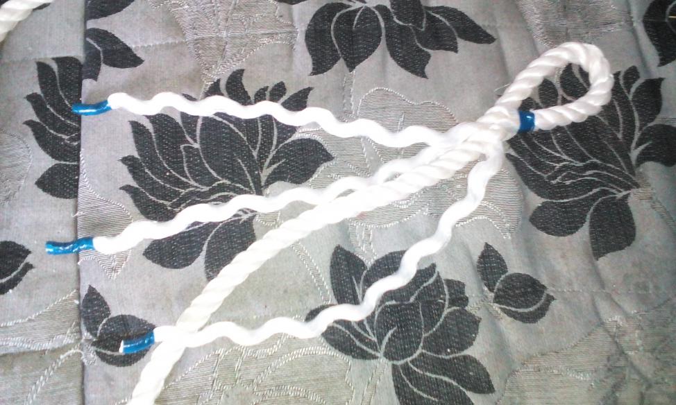 1. На Птичьем рынке был куплен полипропиленовый канат длиной 6 метров, толщиной 19 мм. Цена - 30 рублей за метр (фото 1).