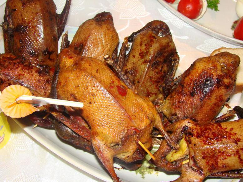 Ощипать, обсмолить и дрессировать (связать ножки и крылышки), и так прямо со внутренностями наколоть на шпажку и обернуть промасленной бумагой. Маленькие шпажки закрепить на одну большой шампур и примерно 8 минут проворачивать через светлую часть ламени. Затем снять бумагу и ввреху шампура наколоть большой кусок сала так, чтоюы жир когда будет растапливатьсяч стекал по всем тушкам. Птичек посолить, обмазать хлебными крошаками и быстро обжарить до коричневого цвета. Подавать с соусом из образовавшимся при жарке. Последние два рецепта нагло сп-дил в тырнете, но у хорошего знакомого. Сам не пробовал, все в переди еще!
