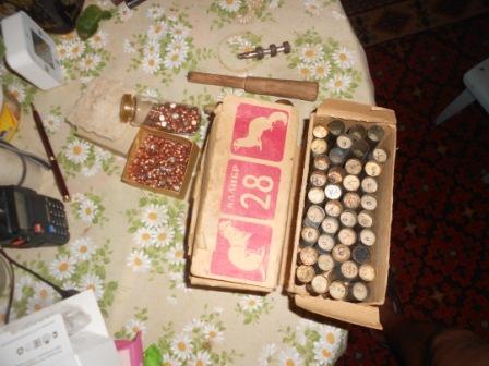 1.гильзы б/у латунь 28 калибра 48 шт. стреляных и 37 шт. снаряженных, капсюль центробой упаковка, металлический ёршик 28 кал. - 2500 руб.
