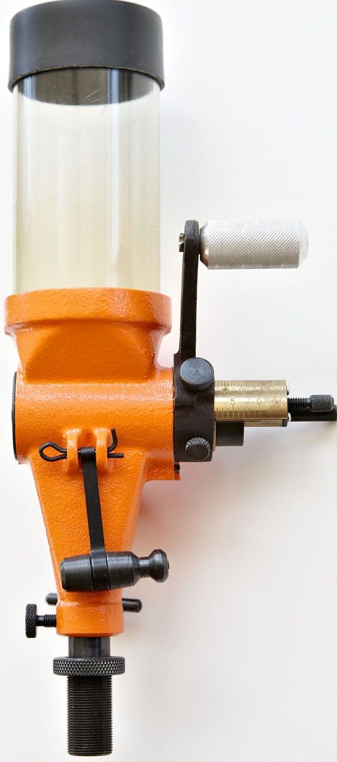 Как таково отдельного дробового дозатора, в наличии нет. Только в составе прессов и на мерных втулках (бушинг). Для дробового отмеривания, как самый оптимальный и более точный. Исходя из своего конструктива, отмеряет (PW-375) до №2 дроби, крупнее в ручную. Про дробовые УМ (регулируемые) не скажу, так как нет в наличии.