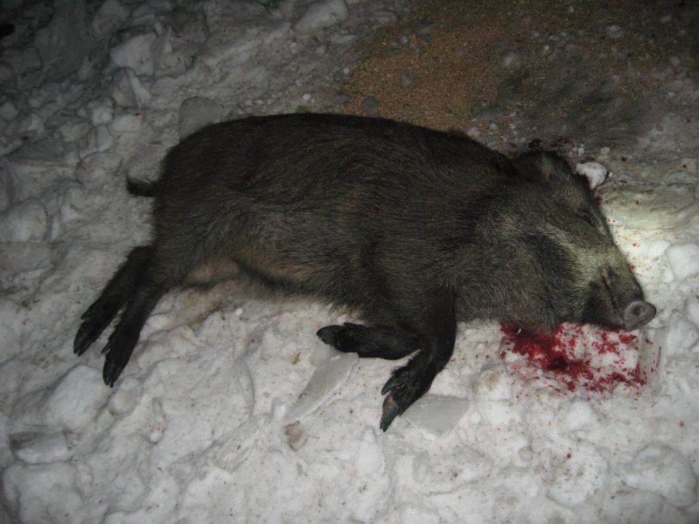 Продолжаю выполнять продовольственную программу к НГ. Результат вчерашней засидки: сеголеток, 50-60 кг, один выстрел в ухо, дистанция 50 м, 338 WM, вышел в 17.00.