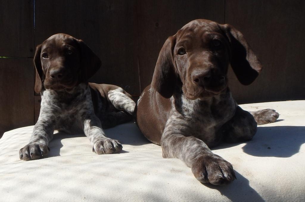 Щенки начали разъезжаться по новым домам, свободны две пегих суки и кобель.