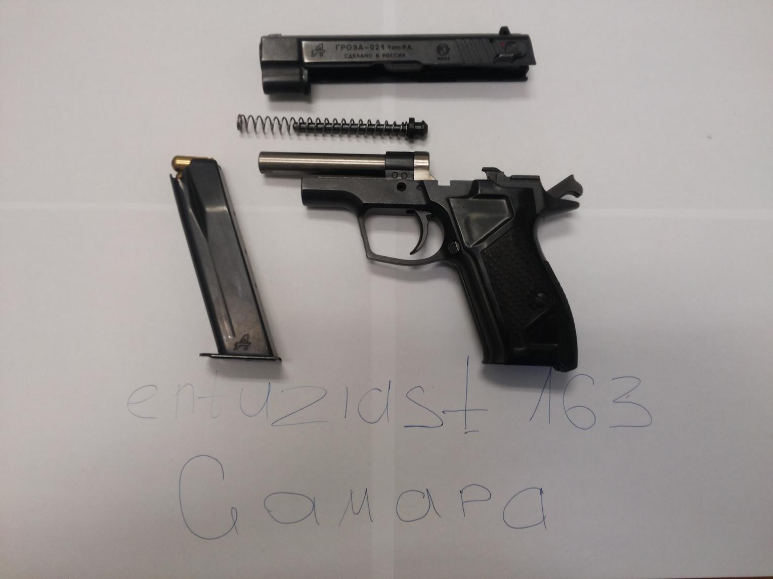 Продам Грозу 021 лежит без дела, в идеальном состоянии, настрел не более 100 патронов. 2 кобуры + пачка патронов дополнительно и еще ОДИН БОНУС купившему. Ценник 40 т.р. оформление в лро самара. 89два7шесть9598тридцать9 Дмитрий. Рассмотрю варианты обмена
