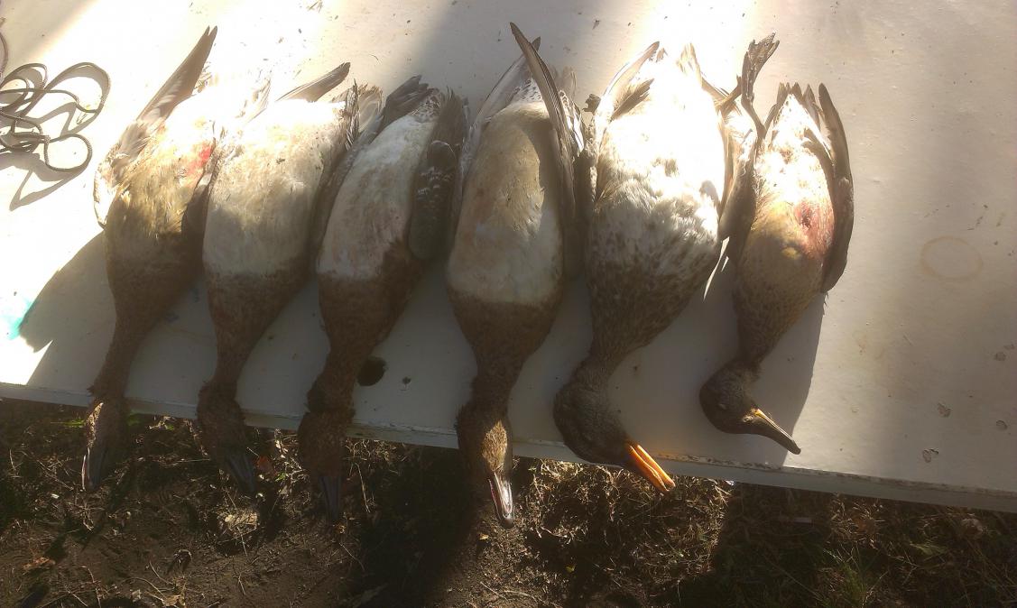 Теперь... Три свиязи были полностью в зимнем наряде без костышей! Причем стенки желудков у них были иссиня-черно-фиолетовые, как от черники. Есть мысль, что не местные... Так как четвертая свиязь была с костышами, желудок зеленый с ряской. Кстати, у нее грудке обнаружил инородные врапления, типа мелких глистов. Утю утилизировал. Серая тож еще не перелиняла, в костышах, а чирок чистый.Все стрелял спортингом 7,5, если попал - без вариантов. Чучела не ставил, только дудки.