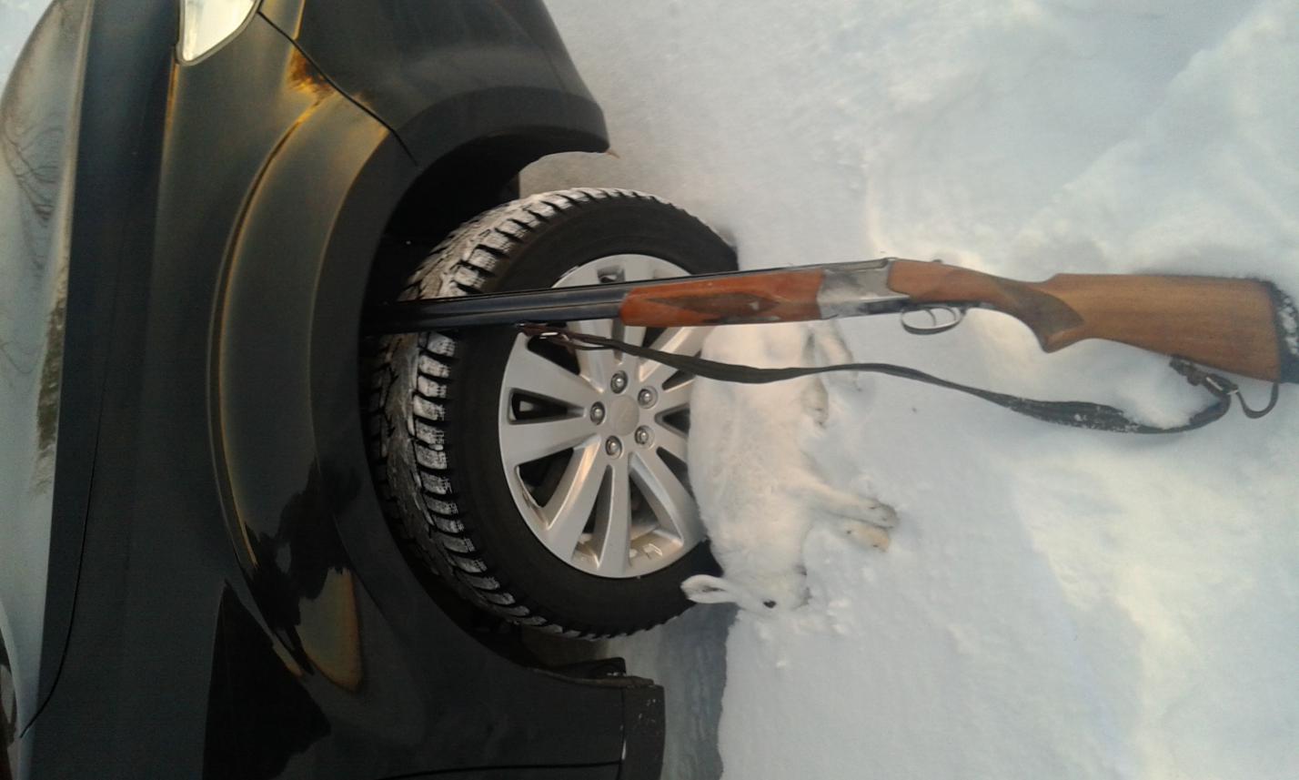 Не грех написать и про мой трофей в этом сезоне: когда ещё снегу было много, решили с товарищами зайца поискать в кинельском районе. Пошли по полю скошенного подсолнечника, но следов зайца 0, касульих полно, даже видели красавцев с большими рогами. Вобщем поле прочесали в одну сторону до противоположной посадки, нет следов. Товарищ который шел по краю поля (с права от него было заброшеное поле с редкими деревцами и травой), поднял куропаток. Снег шел дня 2, в день охоты снега небыло, заяц наверное весь лежал и не вставал. Были следы от машины, походу ночные, касуль наверное гоняли. Решили обратно пройтись по заброшенному полю, растянулись и алга, идти трудно, снегу много, смотрю пятачёк истоптанный заячьими следами, размером не бельше пяти метров, я начал изучать чё к чему, смотрю похавал зайка, потоптался, погадил, входного и выходного следа нет, думаю гдето здесь сидит, трава редкая но высокая, от подсолнуха скошенного метров 100-150, и тут выпрыгивает заяц из своей норки, высоко так сиганул и бултых в снег провалился, я вскидываю, мгновение мысли (близко слишком, метров 5 от меня, ну да ладно, надо стрелять а то уйдёт, бабах, лежит дрыгается), уши остались на месте но череп пополам. Подошли товарищи, посмотрели, я естественно записал зая в путёвку, до начала транспортировки (переноски). Пошли дальше. Больше зайцы не встречались.