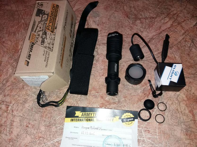 Фонарь новый, приобрел-лежал-не пригодился! Комплект сам фонарь, выносная кнопка, белый светофильтр, тимляк , поясной чехол, какой то ремкомплект, гарантия 10 лет! Цена за все 4000 р!