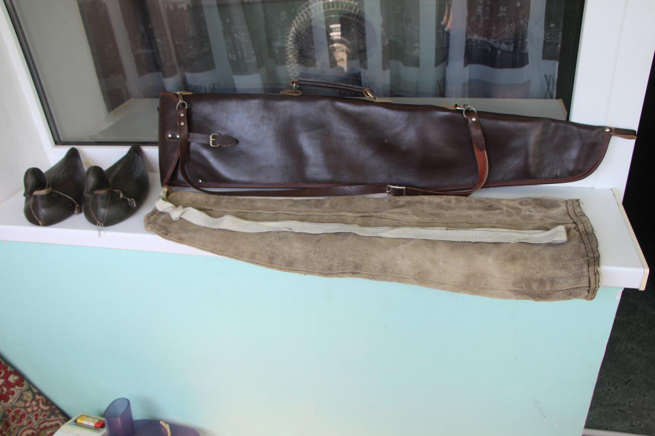 1. Чехол для ружья коричневый кожаный (отрез кожи виден на фото) двухсекционный на ТОЗ -34, ИЖ -27 и тд. - 1500р.