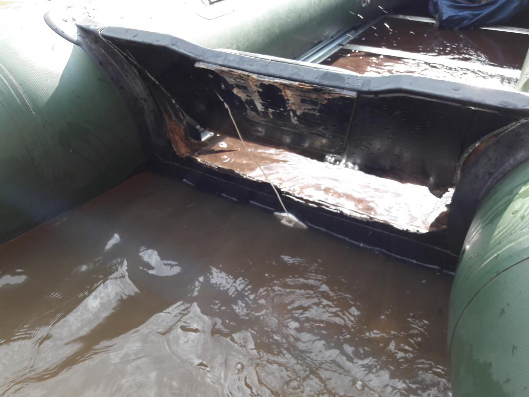 Други! Постигла меня сегодня и печаль и радость... Сегодня на ходу по доброй волне на фарватере транец чуть-чуть не оторвал, на соплях повис, рукой успел двигло поймать и принайтовать. А радость в том, что с сыном не потопли, хоть и "пошла вода в хату", до берега по барашкам дошли по уши в воде (вода до середины балонов была) и мотор не потеряли.
