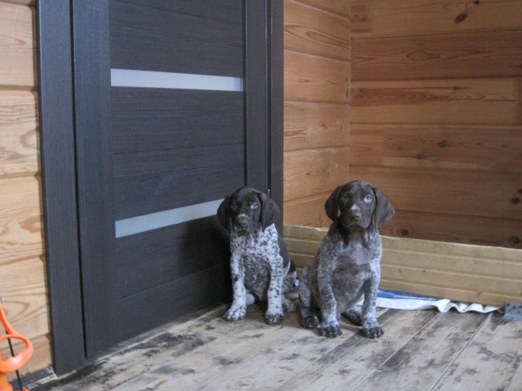 Одного щенка забрал себе сегодня охотник из Саранска.Остался щенок-который сидит ближе к двери.Берите кому надо,щенок породный.Он уже привит,с хорошими документами,от рабочих собак и цена минимальная.Весной этого кобелька уже свободно можно будет брать с собой на вальдшнепа.По воспитанию и натаске щенка я подскажу-не вопрос.