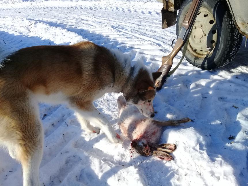 Кратко... День был супер! С утра -28 с бризом, верхние скулы прихватило. К 10:00 солнце потеплело, -20, снял перчатки. В отличии от декабря, когда лежки были в поле, сейчас все лежали в посадке, мордой к своим маликам. И одному взять вообще было не вариант - пропускал мимо и уходил на другую сторону, только с собакеном или напарником.
