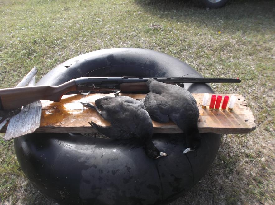 Сегодня в 11-30. Увидел их из машины метров за 300-350. Объехал , машину оставил и к камышу . А там ни кого . Они уплыли уже метров на 100. Случайно увидел. Две лысухи выплыли из за камыша . Бью по ним ,и тут как попёрли из ближайших камышей их сородичи бегать по воде . У меня чуть глаза не разбежались. Но двух все таки взял.