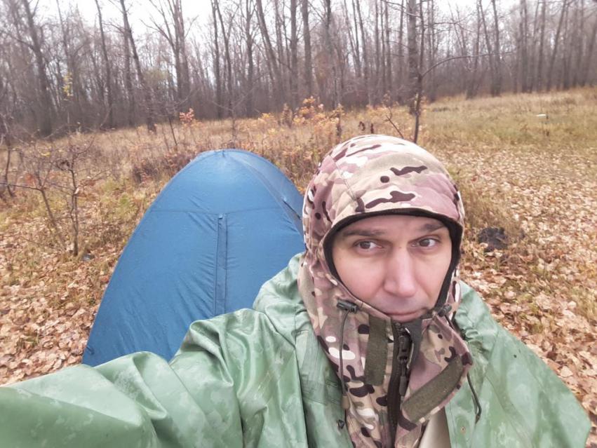 , а еще пару просто проспал . Не сказать, что утки много, но есть. Решил, что на завтра передвину засидку и будет бинго! Ночью было ветреннно, палатку покачивало, но не мерз. Утро решил посвятить щукам. За три часа 2 пустых поклевки и всеееее....... А еще дождь, зарядил тот самый дождь, обещанный прогнозами и, которого я надеялся избежать. Но увы! ![]() В 11 часов решил отобедать басмой с баранинкой, взятой из дома. Разогревал сидя под пленкой. Но какой кайф вкусить горячего, когда продрог под дождем и ветром. Еще бы писярик для сугреву..... Компенсировал горячим чаем из Горной Шории.И тут телефон: друг армейский, однополчанин едет по М5, уже в Сызрани - хочет увидеться. 30 лет не видились, с дембеля! Даже и не задумался - свернул сразу лагерь, встал под мотор и вперед. Встретились в Переволоках, но это уже другая история.Пока шел назад поднял из камыша рядом с лагерем трех кряков... Огромные, размер магнум!!! Я аж хотел зарядиться, так как они покружили и снова упали в островок камыша, где я щук пытал. Но, умерла, так умерла... - пошел дальше. А перед эллингами поднял штук 20 гоголя с открытой воды.Так вернулся нынче с нулем. З.Ы. Проиграно сражение, но проиграна война. З.Ы.Ы.Сын 1-2 ноября был в Казани с классом, сказал, что в городе вся вода забита кряками. Так что, большая утка еще придет.