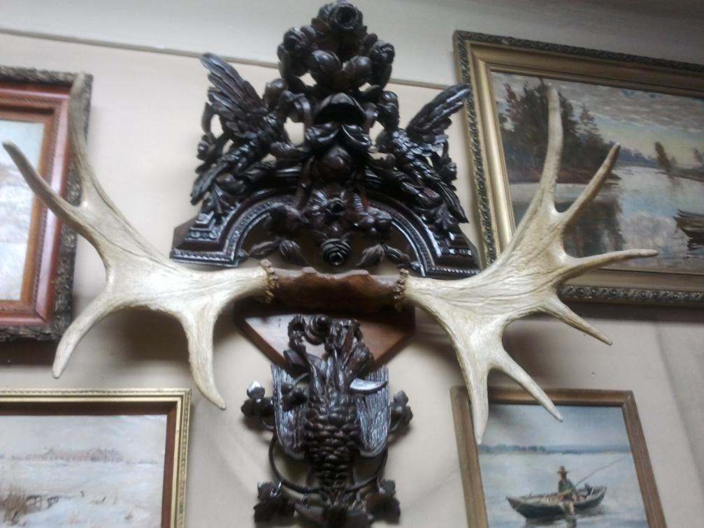 Был я у коллекционера.Предложил купить резьбу по дереву середина 19 века.Украшала трофейную комнату какого-то барина.Работа очень тонкая,каждое пёрышко до мелких деталей вырезано.