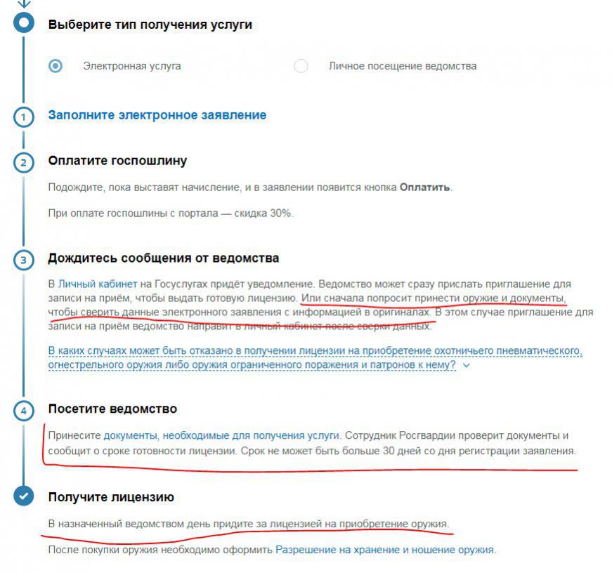 Нужно: - Заявление - Две фото 3х4 - Оригиналы и копии РОХи, охот. билета, паспорта. - Оплатить пошлину. Справки именно мои (от июля 2018г) действительны. Вот что смутило. Говорит ничего прикреплять не нужно, т.к. вам все равно приходить и подписывать заявление и предоставлять вышеперечисленные документы. Во вторник пригласила). В ответ говорю - "А смысл тогда в гос.услугах, если нужно два раза приходить. Поданное заявление через портал является официальным, галочка, что обязан при получении предъявить документы стоит. Да и они все есть у вас в базе. По логике, я должен придти к вам по готовности лицензии и там уже все предъявить и подписать". Ответ - "Нееееет. Вам нужно подойти. А гос.услуги для того, что бы вы получили не приходя к нам квитанцию на оплату. Вы же при получении загран. паспорта так же приходите документы предоставляете после подачи. Вот здесь то же самое." Не стал спорить дальше. Как поступить? Приложил только охот. билет. Остальное из списка - справки и прохождение обучения. Это все у них есть и не требуется. Подать и ждать звонка до победного? |