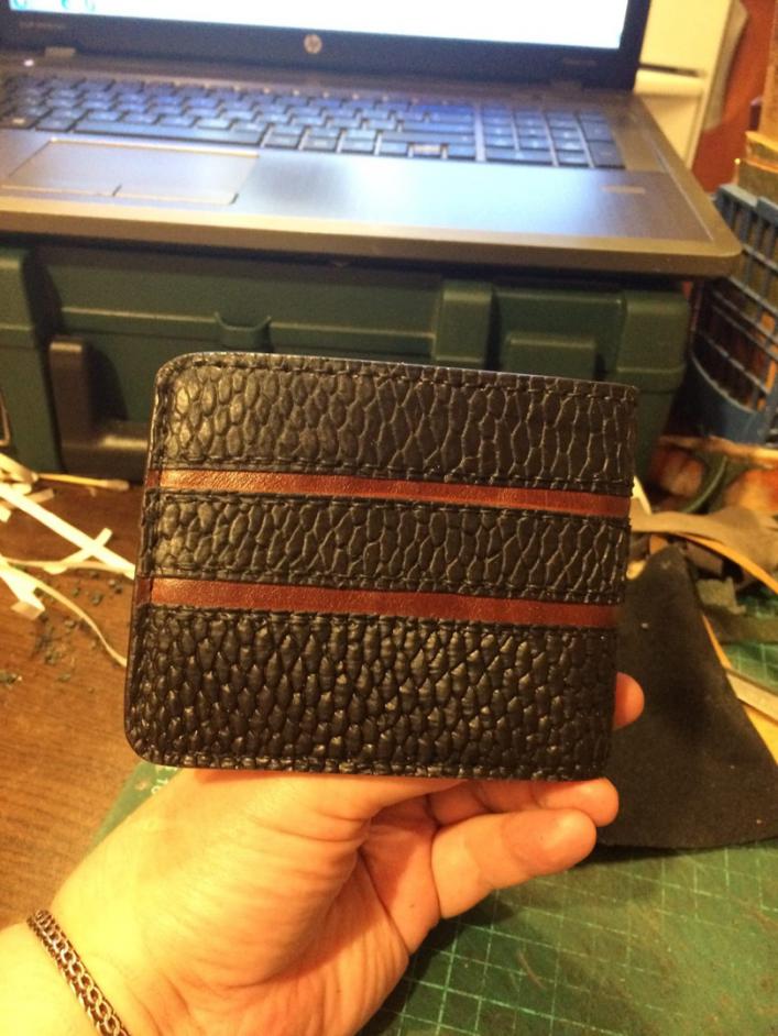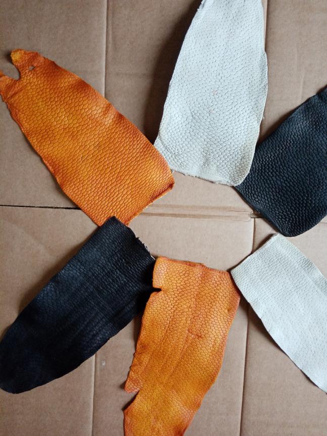 а вот первые пробные работы из этой кожи.